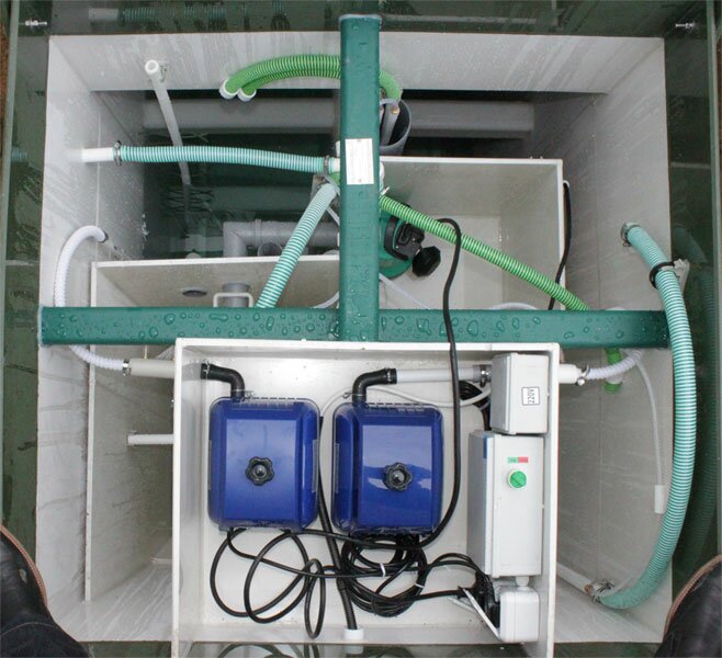 Септик Топас 150 Пр можно считать комплексом, так как она двухкорпусная с распределительной емкостью. Размеры каждого корпуса одинаковы и напоминают станцию Топас 75 Пр. Автономная канализация Топас 150 Пр подходит при условии выполнения следующих параметров: Где количество постоянных пользователей не должно превышать ста пятидесяти человек; Подводящая труба варьируется в диапазоне от 760 до 1260 мм от нулевой отметки земли. Как и любая принудительная станция идеально подходит для плохих грунтов. На выброс очищенной воды срабатывают два насоса, каждый из которых расположен в отдельном блоке. Весь комплекс монтируется на бетонное основание в котлован и по периметру обсыпается песком. Может работать при установки задвижки в половину мощности, что наиболее актуально на объектах с варьирующейся периодической загрузкой. Залповый сброс в обе приемные камеры емкости составляет по 2250 литров, что в совокупности не превышает 4500 литров. Сервис лучше проводить специалистами по регламенту указанному в техническом паспорте на продукцию. По всем вопросам вы можете получить квалифицированную информацию позвонив по телефону 34141 64568.